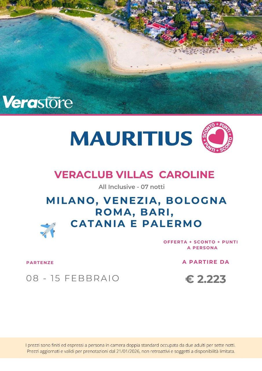 - EXTRA SCONTO A CAMERA DI €150 su Fuerteventura (Veraclub Jandia), Marsa Alam (Veraclub Emerald Lagoon e Veraclub Vita Resort), Messico (Veraclub Royal Tulum) e Madagascar (Veraclub Palm Beach & Spa);